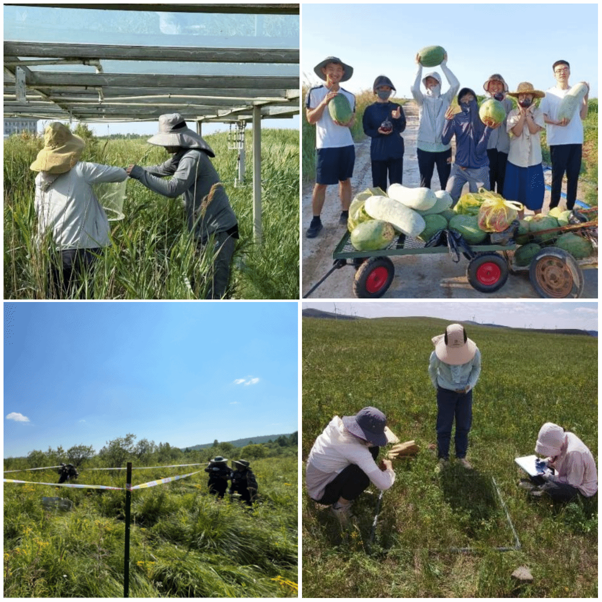在中国科学院黄河三角洲滨海湿地生态试验站、大兴安岭地球关键带生态站、中国科学院植物研究所浑善达克沙地生态研究站(安徽农业大学生态学省级研究生联合培养示范基地)、中国农科院鄂尔多斯试验站等多个科研院所野外站点,师生深入学习湿地控制实验设置方法与测定技术,研究降雨量变化对湿地植物群落和碳通量,监测森林、湿地的温室气体排放,调查湿地生物、草原植物等生物多样性进行了监测。