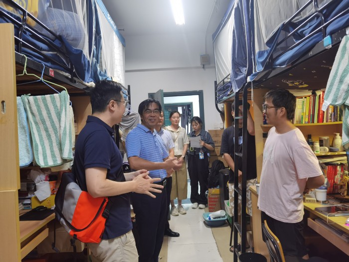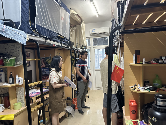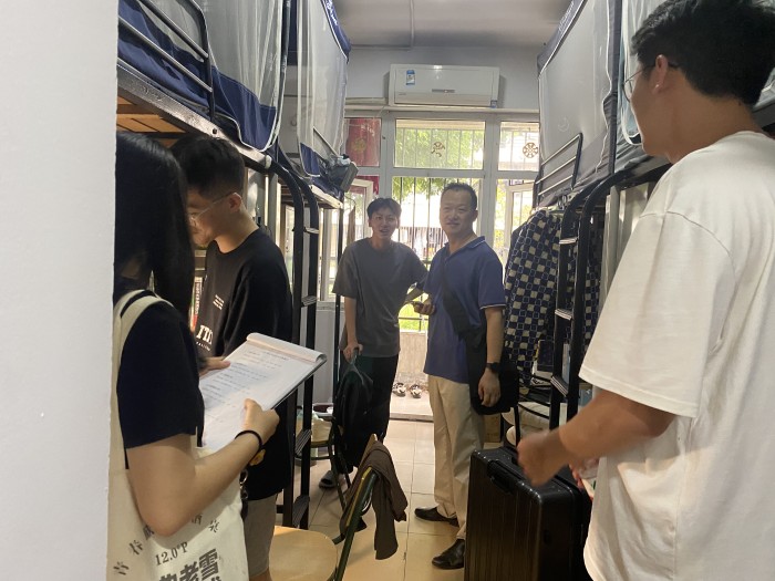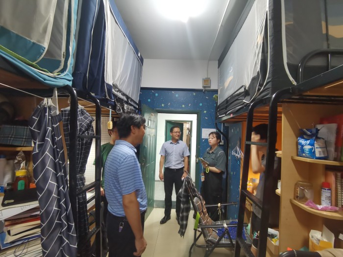 本网讯 “暑假期间过的怎么样”“开学到校有没有什么困难”“这学期开学有什么规划”……8月27日晚,经济管理学院班子成员来到包保年级的学生宿舍,和辅导员一起看望慰问返校学生,及时了解学生的思想动态、健康状况、生活需求及宿舍卫生情况,引导大家以积极状态投入新学期,确保开学学生工作平稳有序开展。
