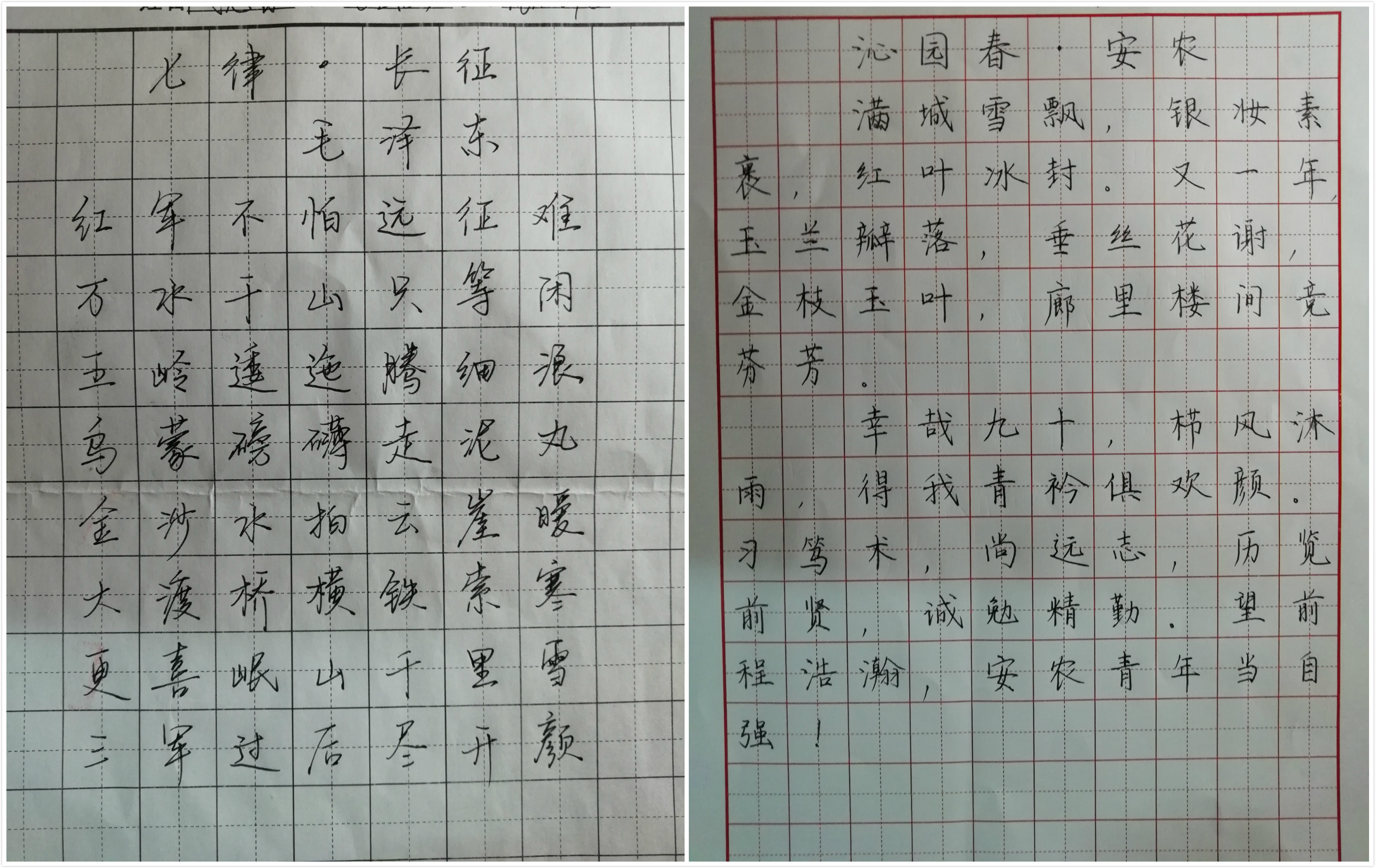 学院团委于4月中旬举办诗词硬笔书法比赛,与全校师生一同学习总书记的“诗词情缘”、古今往来的爱国诗词,旨在传承中国优秀传统文化,让民族文化基因代代相传。比赛共收集到100余份优秀作品,展现了当代青年的家国情怀,提升了大学生对优秀传统文化的认同,培养了同学们的爱校、荣校精神,营造了良好的校园文化气氛。