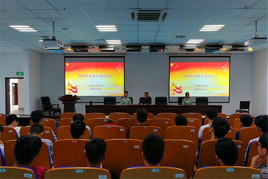 动员会由我校征兵宣传片引入,学院退伍复学同学代表——2015级生物类创新实验班程盛同学和2016级生物类创新实验班孟雅如同学分别就其在部队服役期间的个人选择、军营生活、个人收获等方面向全体与会师生进行了分享,真实还原军旅生活,充分点燃学生的参军激情,起到良好的鼓舞效果。