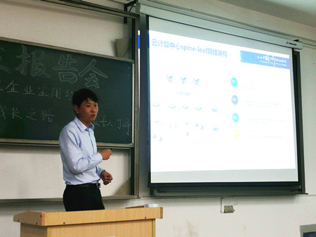 本网讯5月9日晚,信息与计算机学院2012届网络工程专业毕业生、现任科大讯飞股份有限公司IT架构部经理丁峥校友应学院网络工程系邀请,在经济楼302教室为学弟学妹们带来一场以“网络技术在企业应用分享——网络架构师成长之路”为主题的校友报告会。报告会由网络工程系主任朱军老师主持,学院15级、16级网络工程和计算机等专业同学参加了报告会。