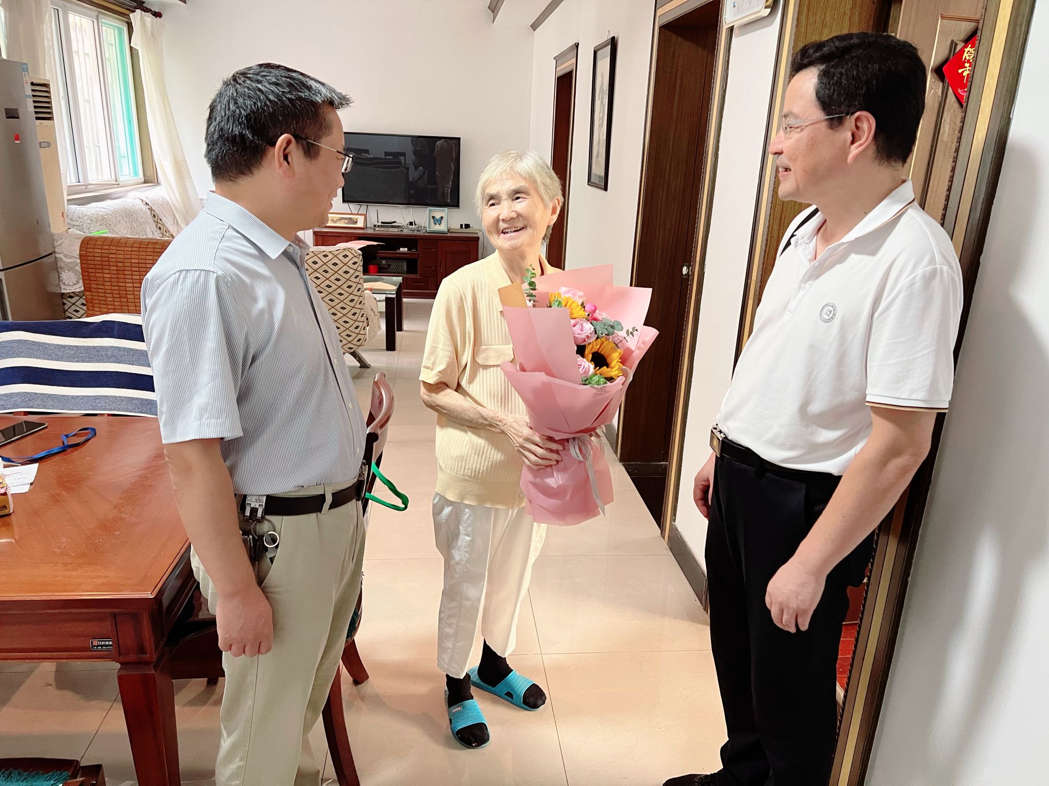 9月6日上午,马克思主义学院党政领导孙超、方国武、袁修雨来到退休教师刘雪英、张玉屏家中,向她们送去教师节祝福,对她们为学院建设发展作出的贡献表示感谢。学院党政领导亲切看望了工作在一线的王清平教授和徐俊教授,感谢他们近年来为学院教学科研付出的努力并送上节日祝福。