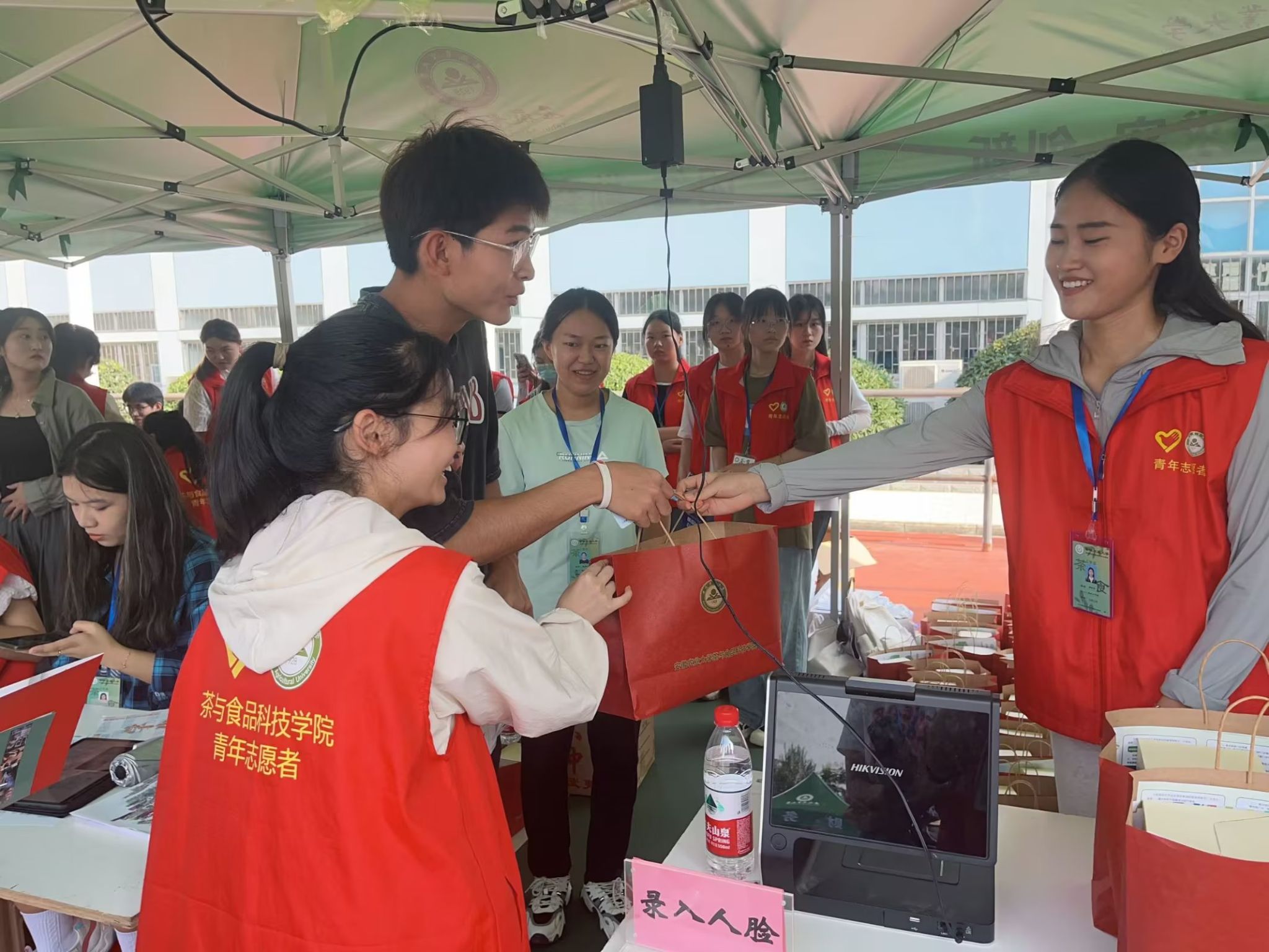 迎新现场,气氛热烈,秩序井然。为提高新生的专业认知度和认同感,学院前置专业思想教育,大益爱心茶室、祥源茶吧……各类体现专业特点、鲜明特色的学生创业平台,吸引了众多新生和家长的驻足观看和品茶。
