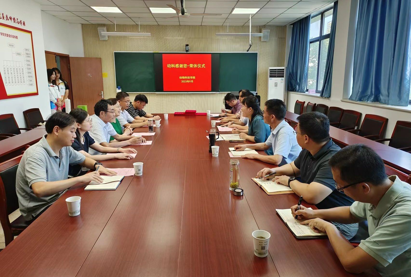 9月7日,学院举行“动科感谢您-荣休仪式”退休教师代表座谈会,学院领导班子、系部主任和教师代表参加了活动。座谈会上,退休教师言辞恳切,深情回忆了在校任教期间的时光岁月,积极建言献策,表达了对农大、对学院建设发展的热情和期望。学院党委副书记(主持工作)沈兆梅表示,退休教师是学校、学院发展的见证者与建设者,是宝贵财富和学习榜样,感谢他们对学校、学院发展的关心关注,祝愿教师节快乐、退休生活幸福安康,学院领导班子将团结带领学院全体教职工鼓足干劲、力争上游,不负期望。