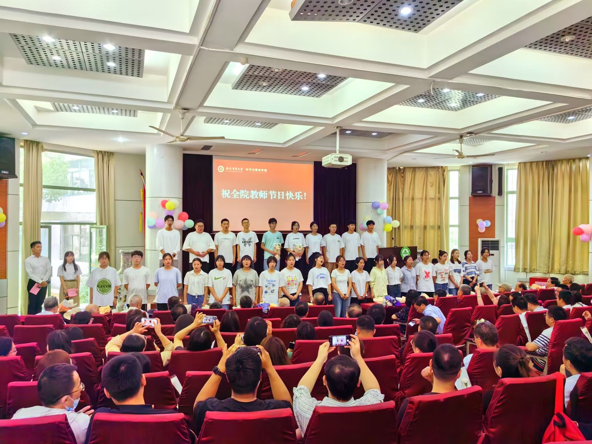 师生代表共同带来了诗朗诵《赞恩师》,庆祝大会在饱含深情的师生合唱《感恩的心》中圆满结束。(作者:胡贝贝 一审:胡先业 二审:夏利明 三审:周晓璇)
