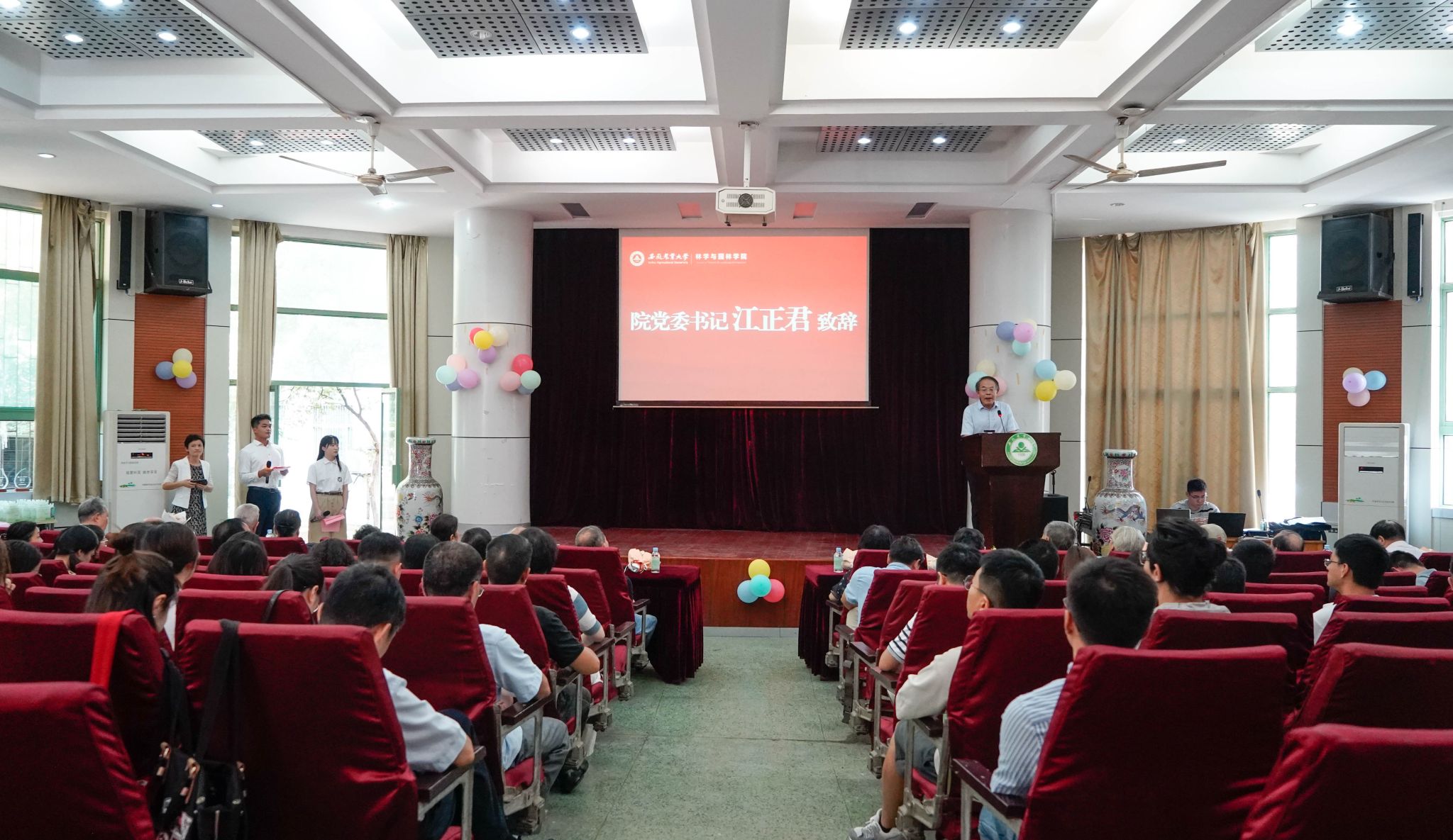本网讯 9月8日上午,林学与园林学院在林学楼一楼报告厅隆重举行“躬耕教坛,强国有我”教师节庆祝大会。学院退休教师代表、全体教职工及部分学生代表参加庆祝大会。
