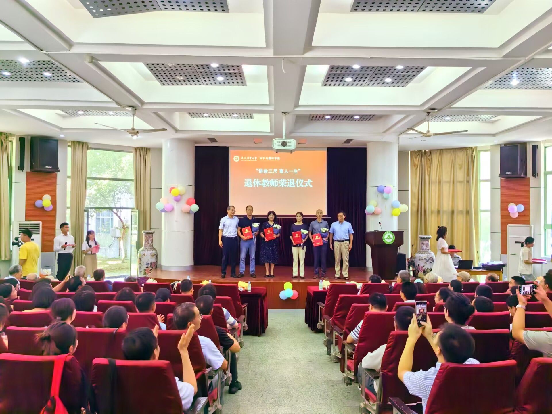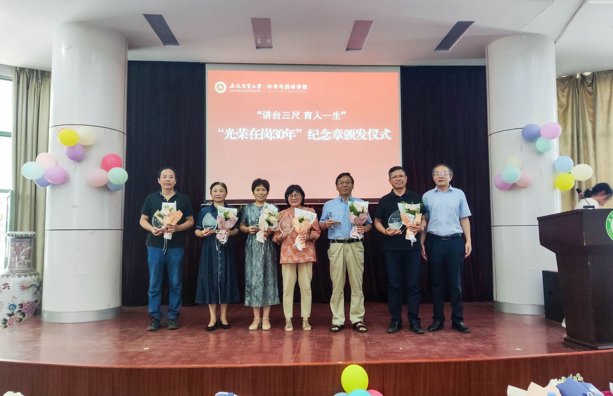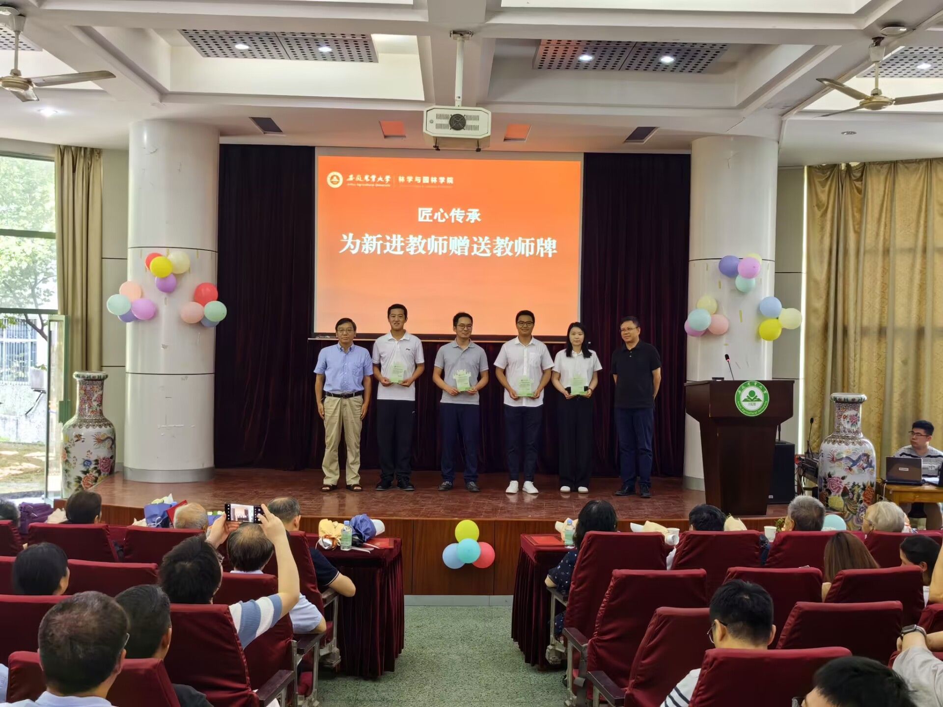 会上,为近三年退休教师代表举行了荣退仪式,为“光荣在岗30年”教师颁发了纪念奖章,“光荣在岗30年”教师为新进教师赠送了教师铭牌,希望新入职教师秉承前辈的优良品质,立足本职工作、爱岗敬业,潜心教书育人,在推进学院事业发展的征程上实现人生价值。