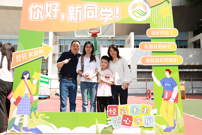 为做好学院882名2023级新生的迎新工作,学院开启了暖心模式,不仅在经管楼前广场精心搭建了由全体新生姓名组成的“欢迎2023级新同学”特色专属桁架,还在迎新现场为新生提供了打卡墙和主题手持牌,通过营造创意打卡点让新生和家长合影打卡,记录初入校园的“第一瞬间”“美好时刻”。