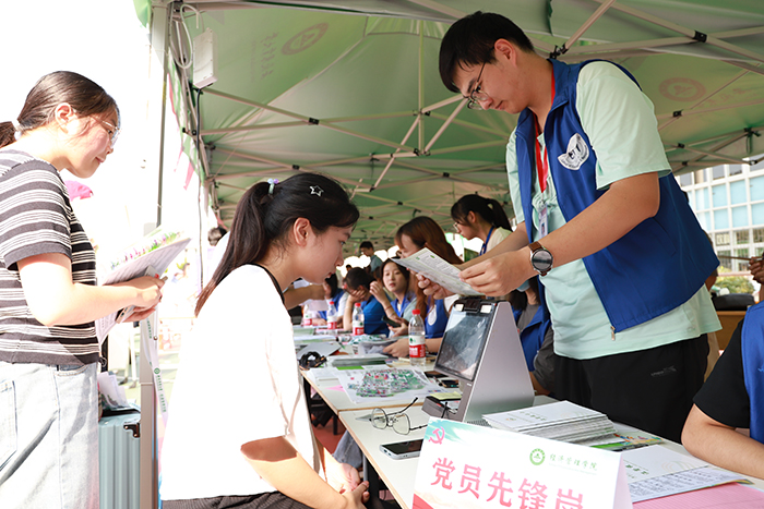 为安全、有序、高效地做好2023级迎新各项工作,自8月23日迎新工作启动以来,学院党员、学生干部和各专业学生积极报名响应争当迎新志愿者。学生党员充分发挥党员的先锋模范作用,第一时间组建“党员先锋队”,通过亮身份、做表率展现经管学生党员形象。迎新期间,“党员先锋队”的学生党员和志愿者们不仅严谨、细致、耐心地做好线上答疑、礼品分装和现场布置等各项前期工作,更在迎新中发扬了不怕苦、不怕累的精神,带领新生顺利完成身份验证、新生大礼包发放、入住宿舍等各项工作,用实际行动擦亮迎新工作的“红色品牌”。