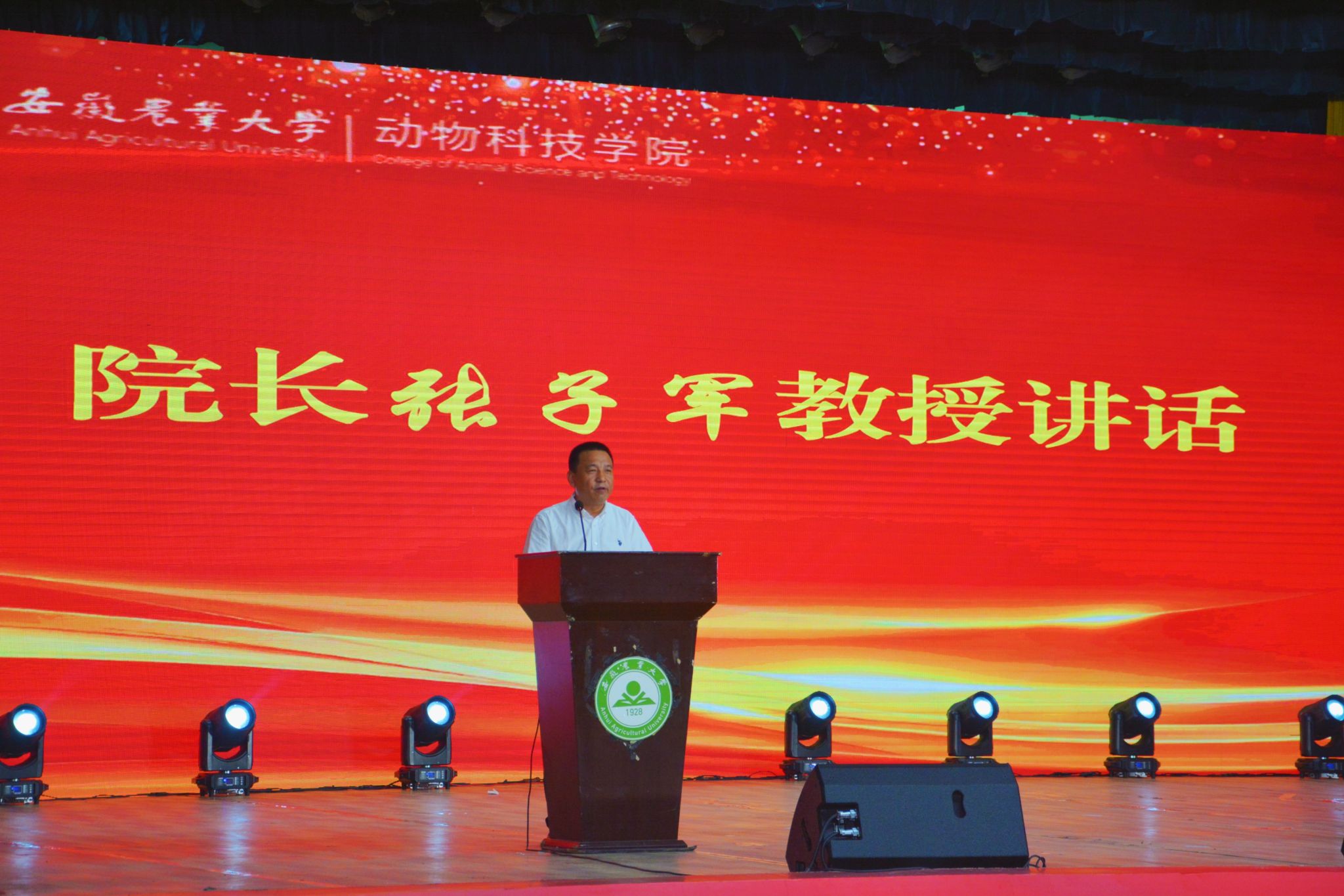 张子军在致辞中详细介绍了学院历史、师资力量、人才培养、科学研究、获奖成果等情况,勉励动科学子们要“立三信,重五育”,即要树立崇高的信仰、建立充分的信任和足够的信心,实现德、智、体、美、劳全面发展,希望同学们不负韶华、在奋斗中释放激情,追求理想、用勤奋书写青春画卷。