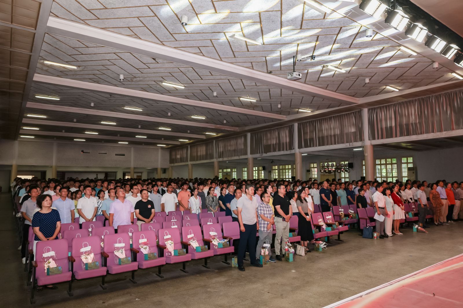 本网讯 在第39个教师节来临之际,9月9日上午,资源与环境学院2023级600余名新生开学典礼暨教师节庆祝表彰大会在校大礼堂隆重举行。党委学生工作部、党委武装部、学生处(大学生就业指导中心)部长、处长、主任任琪应邀出席,学院党政领导班子全体成员、各系部负责人、师生代表、专兼职辅导员、研究生班主任以及全体2023级新生共同参加典礼。