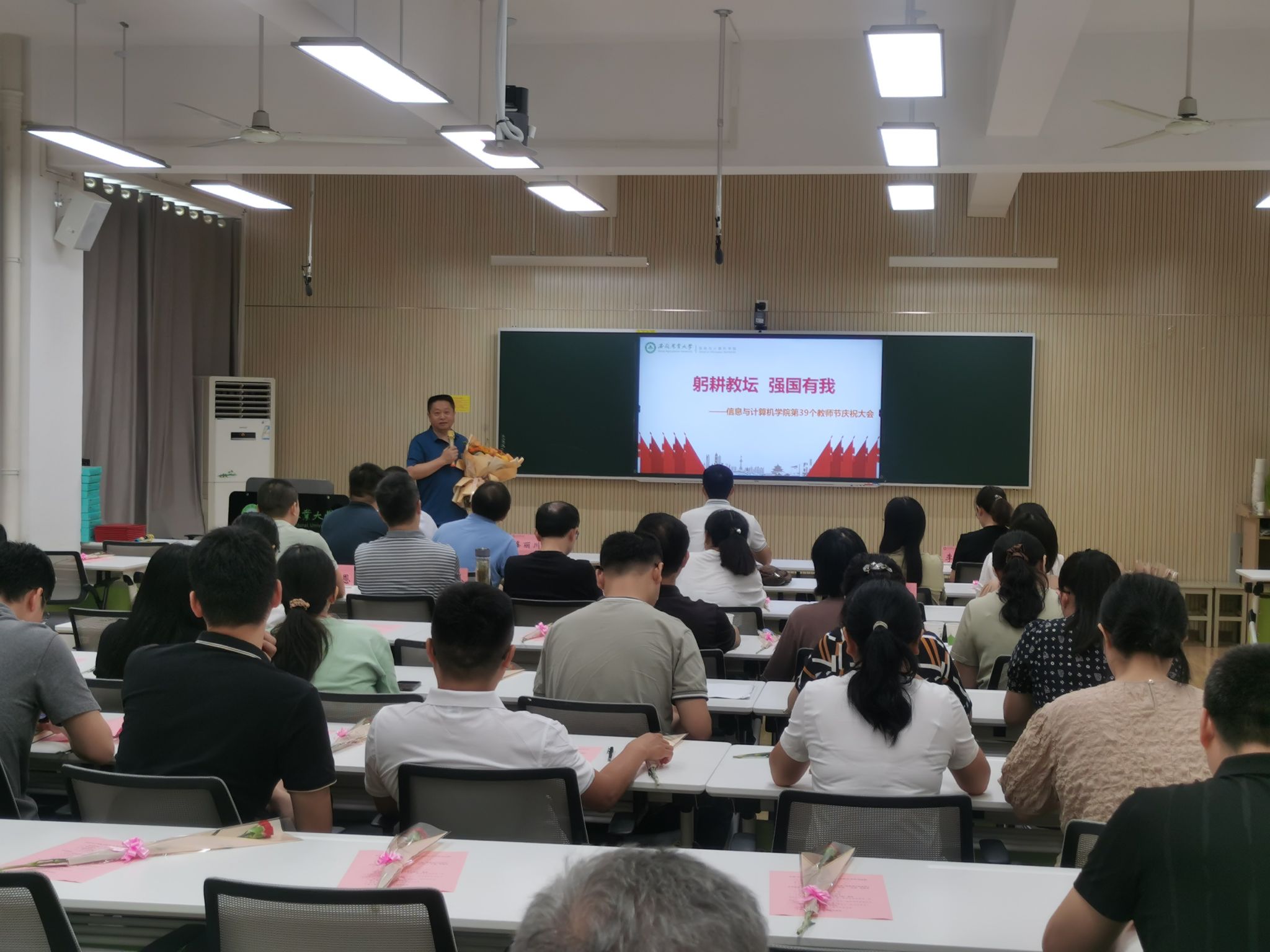 本网讯 春风化雨育桃李,金秋九月颂师恩。在我国第39个教师节即将到来之际,信息与计算机学院以“躬耕教坛 强国有我”为主题,开展了教师节系列庆祝活动,不断增强教师崇德修身、潜心育人的责任感和使命感,凝聚健康向上、主动乐观的正能量。