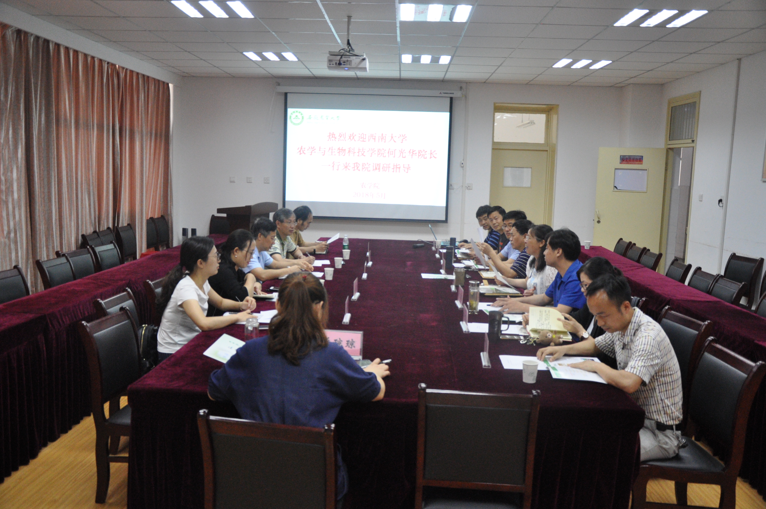 何光华介绍了西南大学农学与生物科技学院的基本情况、师资队伍、办学规模、教研机构等情况,重点对学科建设与人才引进做了交流讨论。