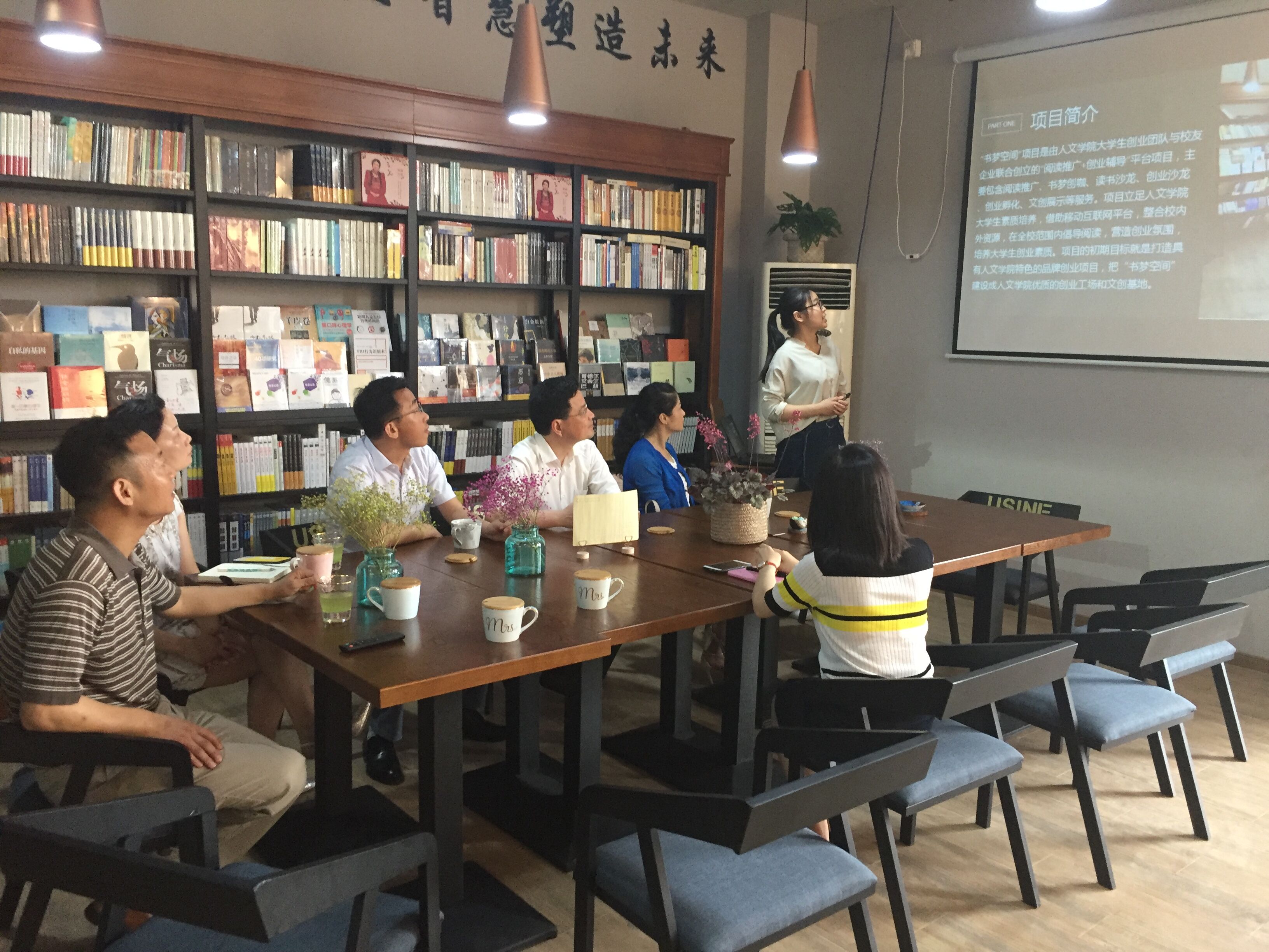 本次启动仪式分为项目路演、创业知识讲座和学生实地参观三个阶段。首先,由项目负责人16级汉语国际教育专业学生进行项目路演。随后,特别邀请方亚孵化董事、方亚企业学院院长陈玉婉作 “创业的那些事”创业知识专题讲座,学院文创兴趣小组学生30余人参加了报告会。最后,同学们还实地参观了“书梦空间”,零距离体验“书梦空间”为大家提供的线下服务项目。