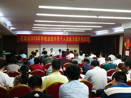 本网讯5月18日下午,由芜湖市农业委员会主办,继续教育学院与外国语学院联合承办的“芜湖市2018年农业技术骨干人员能力提升培训班”顺利开班。芜湖市农业委员会党组成员、农科教办主任高芦生、外国语学院副院长(主持)孙志农出席开班典礼。开班典礼由外国语学院党委副书记黄庆华主持。
