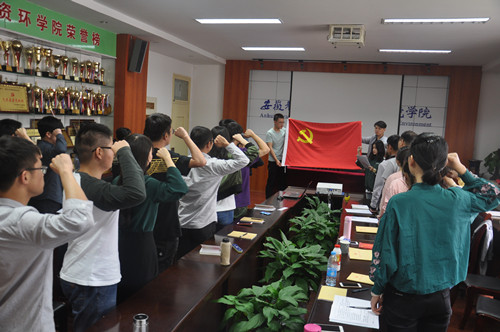 本网讯 为加强党员教育,强化党员意识,5月22日,资源与环境学院学生第一党支部和学生第二党支部分别召开党员大会,进行入党宣誓。