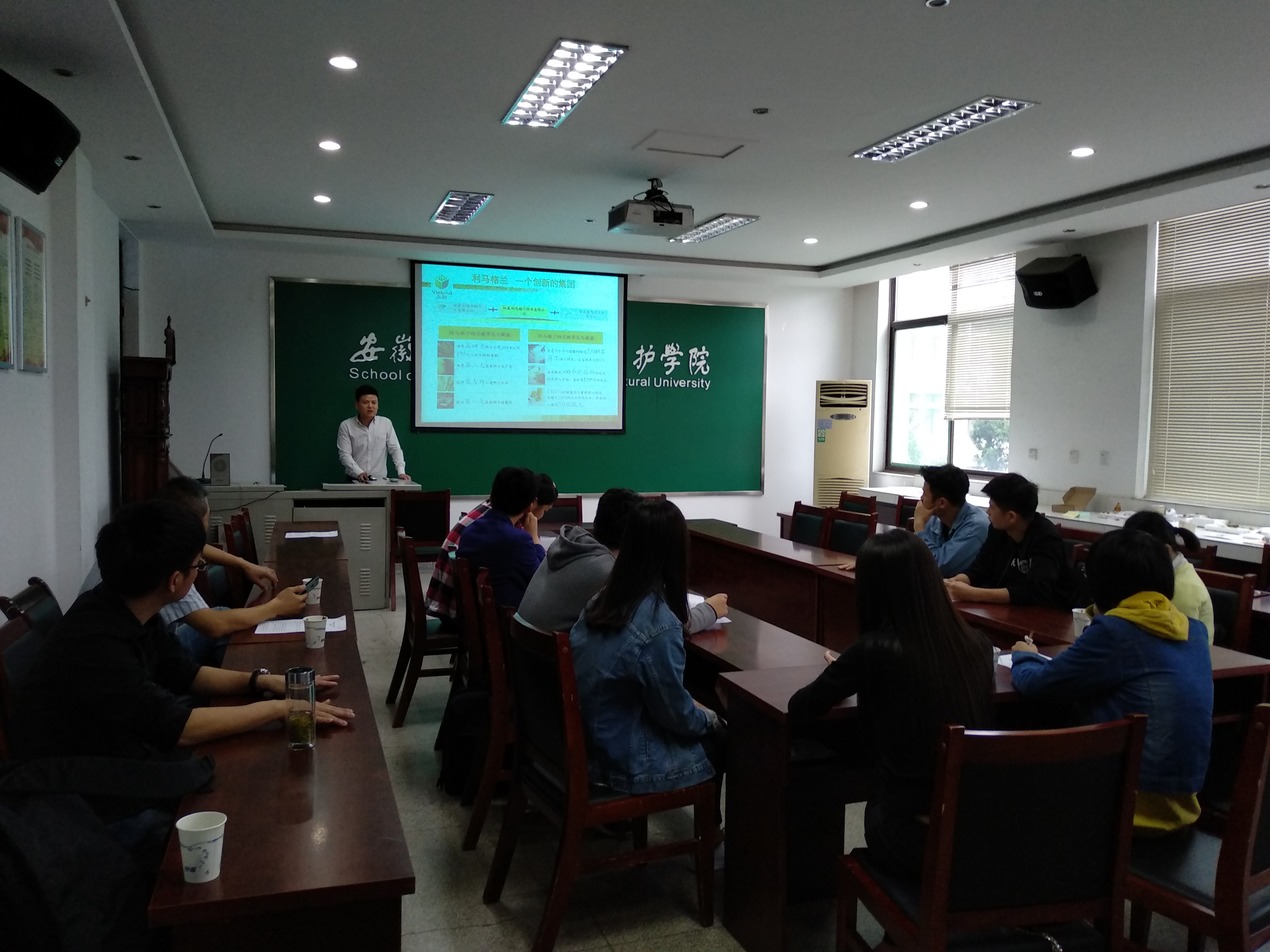 本网讯5月22日上午,植物保护学院邀请安徽信邦农业有限公司、安徽燕化禾谐植物保护有限公司、贵州筑农种业有限责任公司、杭州汉徽科技有限公司等4家企业单位在学院334会议室举办专场宣讲会。