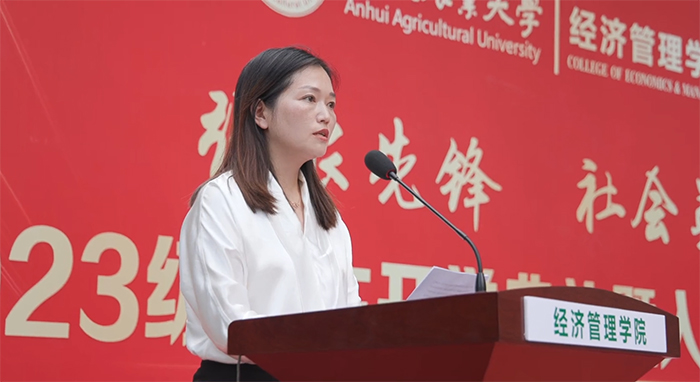 会上,教师代表王艳荣教授,研究生代表、2023级学硕班刘一诺同学,本科新生代表、2023级农林经济管理专业夏继同学分别作了发言。