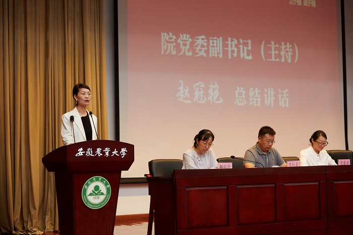 学院党委副书记(主持)赵冠艳代表学院向新生的到来表示衷心的祝贺和热烈的欢迎,她指出,园艺学院具有浓厚历史文化底蕴,拥有一批情系"三农"、心系学生、担当作为的大学者、大专家;园艺学科资源聚集、动能强劲、厚积薄发。她深情寄语广大新生,要明大德、守公德、严私德,要立鸿鹄志、报国志,做一个德才兼备、以德为先的新时代园艺人。要耕读力行,求知若渴、求真学问、练真本领,打牢打深专业基石,做一个勇毅笃行的园艺人。要守正创新,善于发现问题,锻炼思辨能力,不畏困难,敢想敢干敢创新,做一个勇担使命的园艺人。
