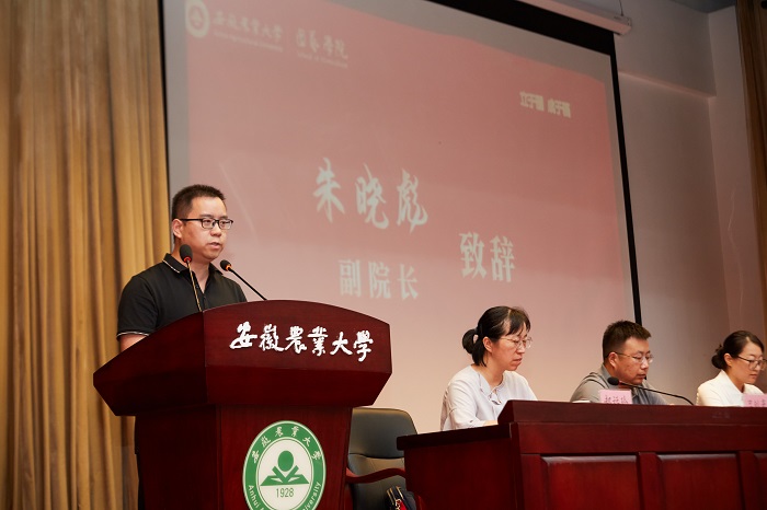 副院长朱晓彪介绍了学院学科、专业、平台和人才培养情况,并寄语同学要尊师重友与独立自省“同行”、要坚定信仰与静心求学“同行”、要勇于执着和善于放弃“同行”。