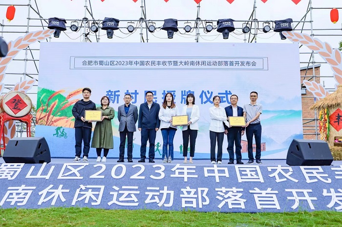 发布会上,合肥市蜀山区为参加岭南新村民计划“青春合伙人”的安徽农业大学园艺学院“小莓好”创新创业团队授牌。