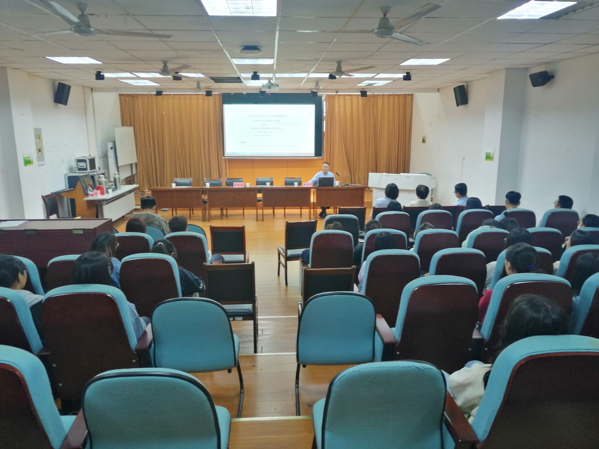朱教授指出,全过程人民民主的修宪立法原则是指导未来进一步完善宪法和提高立法质量的重要原则。报告会中,朱教授与参加讲座的学生亲切互动,热情为我院学生答疑解惑。