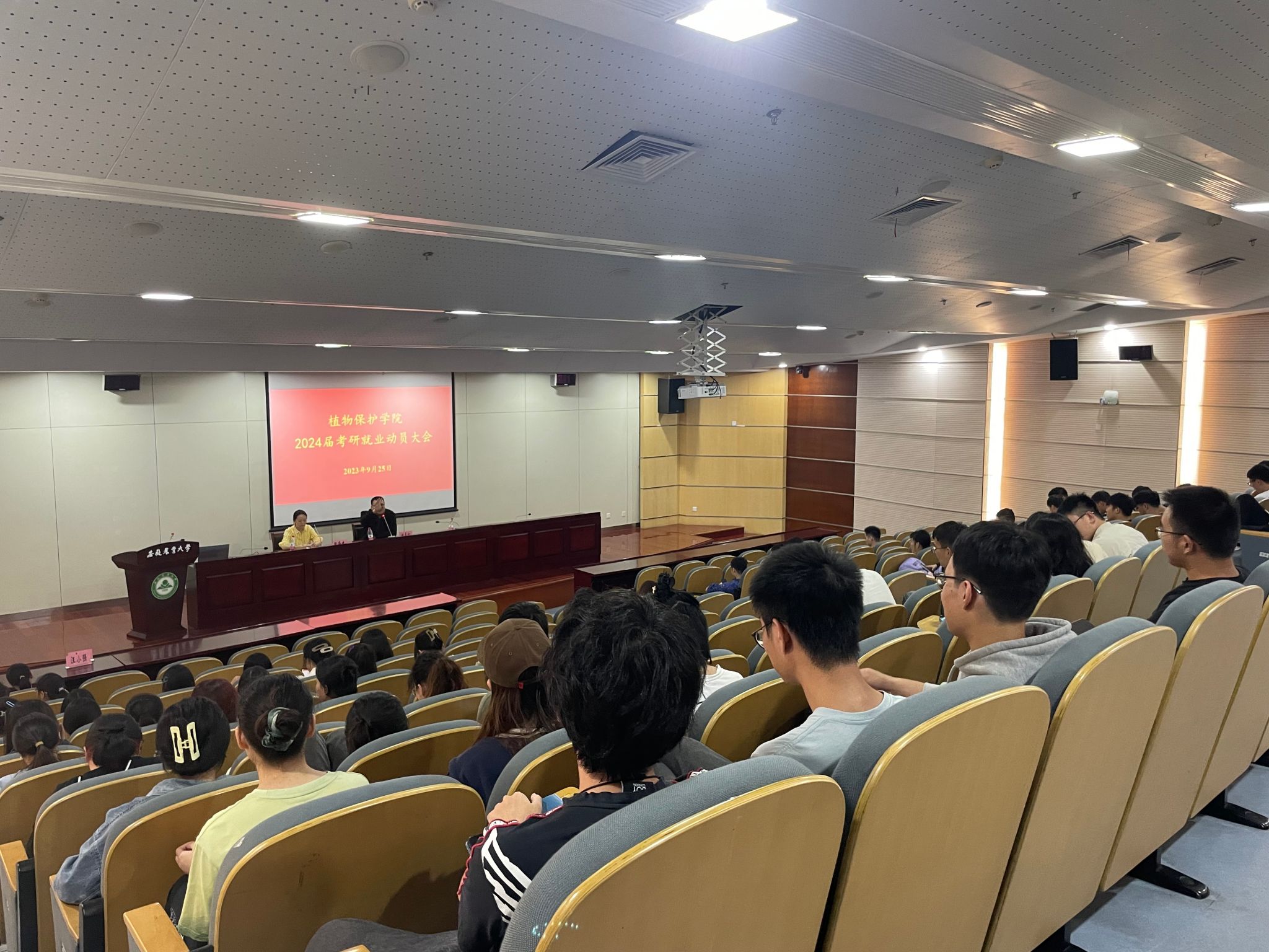 本网讯 9月25日晚,植物保护学院在图书馆第二报告厅召开2024届毕业生考研就业动员大会。研究生院副院长姚辰松、2008届植保专业优秀毕业生星宇化工集团李旭及2024届本科毕业生参加了会议。会议由副院长张华建、副书记汪小强主持。