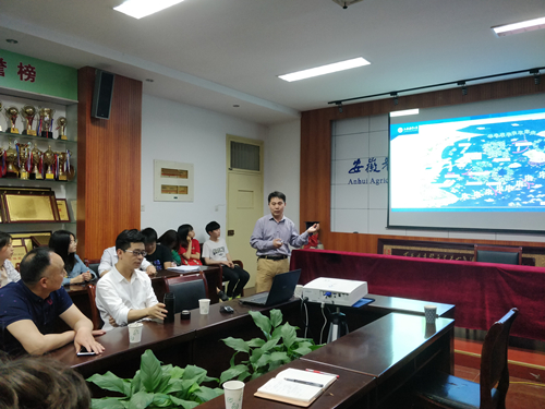 本网讯 5月25日下午,应资源与环境学院邀请,上海海洋大学张硕、张俊波两位副教授来校开展学术交流,张硕、张俊波分别作了题为《海洋牧场研究与建设发展概况》、《三维海洋生态系统数值模型构建与应用》的学术报告,学院相关学科老师、研究生和本科生参加了报告会,报告会由学院党委副书记兼副院长张晓伟主持。