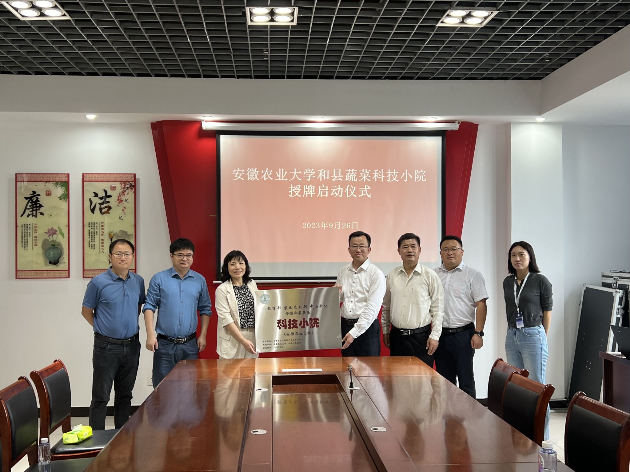 本网讯 9月26日,资源与环境学院党委书记王琼带队前往马鞍山和县,应邀参加和县第十四届蔬菜博览会开幕式,并于和县台湾农民创业园举行安徽农业大学和县蔬菜科技小院授牌仪式。学院分管领导、就业负责老师参加授牌仪式。