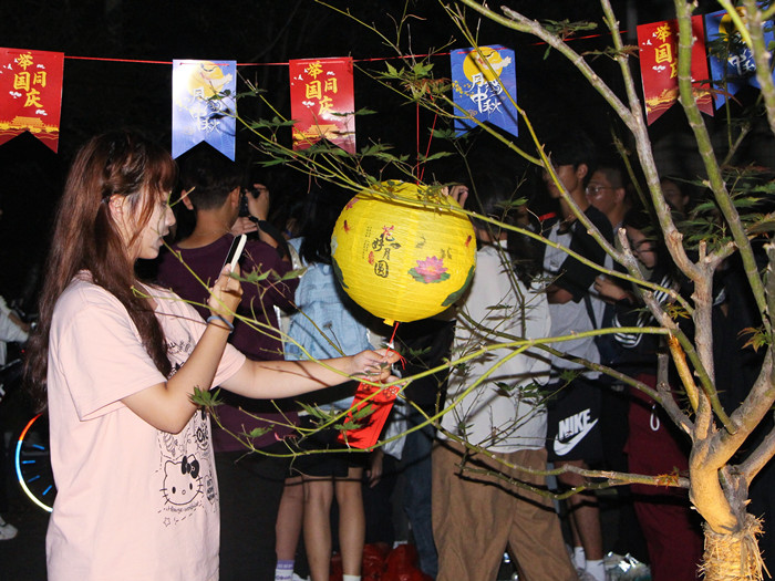 9月27日晚,经济管理学院学生会在经管楼银杏长廊开展“月圆中秋·情满经管·庆颂祖国”赏灯猜灯谜活动。活动现场人流涌动、热闹非凡,美轮美奂的装饰为中秋、国庆双节营造了浓厚的节日氛围。一盏盏花灯、一张张灯谜、一条条祝福,更是点燃了经管院学生的参与热情。活动开始后,学生们发挥聪明才智,积极参与、踊跃猜谜,谜语类型涵盖了中秋文化、历史、常识等多个方面,既有娱乐性和互动性,又有利于学生在轻松愉悦的氛围中接受传统文化的熏陶和教育,正确猜出谜底者还可兑换精美礼品一份。活动结束后,同学们纷纷表示,不仅感受到了热闹的节日氛围,还亲身体验了传统文化的魅力,增强了自身的民族自豪感。