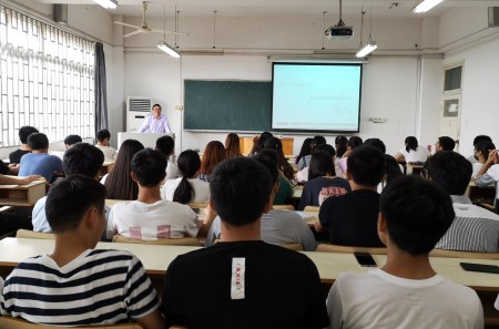 孙伟在主持报告时简要介绍了校友企业广州信农生物科技有限公司和董俊校友的基本情况。他希望同学们向优秀学长学习,把握机遇,调整心态,摆正位置,奋力拼搏、奋发成才。