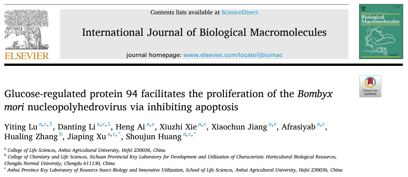 本网讯 2023年10月5日,安徽农业大学生命科学学院黄守均副教授团队在中科院一区TOP期刊《International Journal of Biological Macromolecules》(IF:8.2)上线发表题为“Glucose-regulated protein 94 facilitates the proliferation of the Bombyx mori nucleopolyhedrovirus via inhibiting apoptosis”的研究论文,解析了定位于内质网的HSP90家族蛋白BmGRP94促进BmNPV感染家蚕过程中的分子机制。