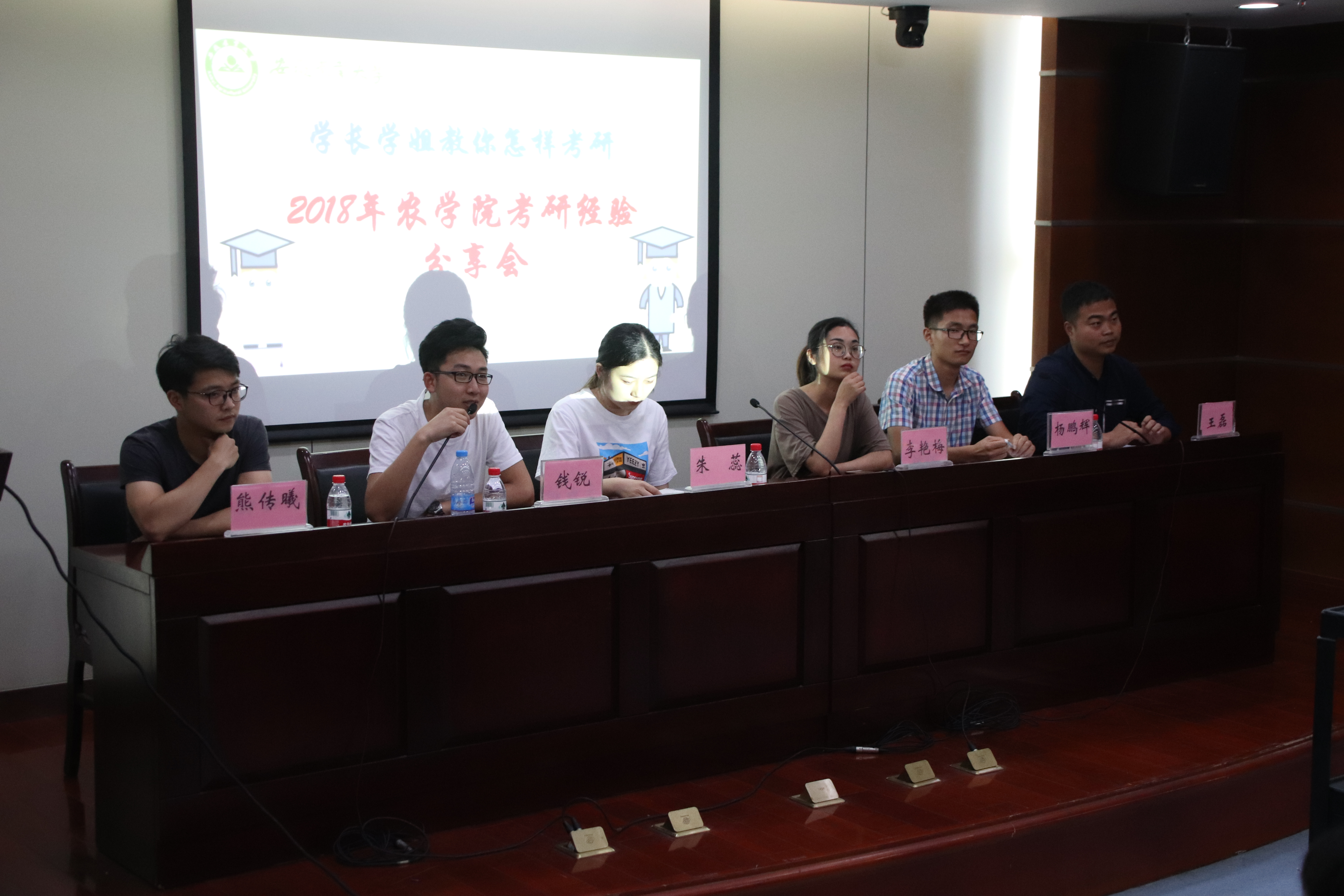 交流中,六位同学都提到了一直默默帮助自己的学长学姐,感激那些未曾谋面的人对自己的悉心指导,同时他们也表示将不遗余力的为下一届的考研学习提供帮助,继续发扬农学院经验传承的良好传统,接力助航2019届学弟学妹们的考研之路。他们也希望各位考研同学保持一颗自信心、恒心、平常心,鼓励在场同学要沉下心来,耐得住寂寞,全身心投入考研。