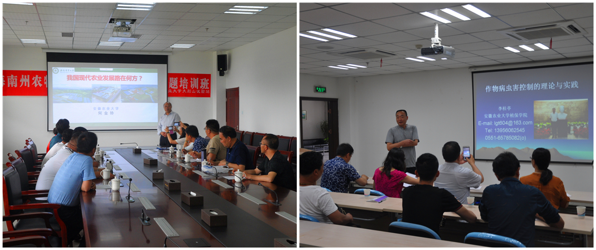 培训期间,培训班邀请了植物保护、肉羊养殖、食用菌栽培等方面的专家进行了授课。学员们还利用课余时间参观了学校大别山综合试验站、郭河产学研基地、马鞍山市畜牧产业创业孵化器、芜湖大浦农业科技园区及现代化养殖“金农牧业”公司等。