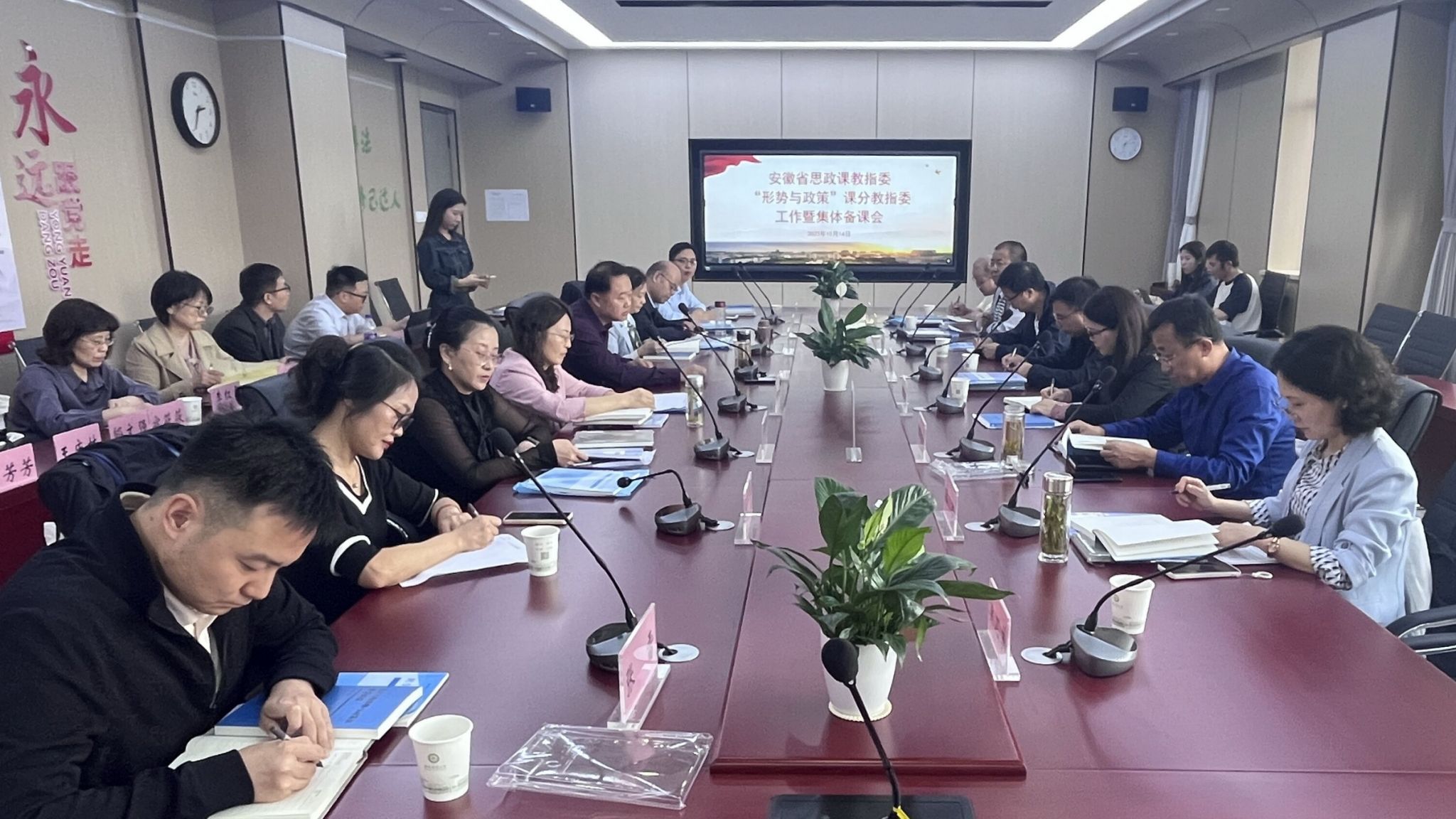 本网讯 为深入学习贯彻习近平新时代中国特色社会主义思想和党的二十大精神,推动习近平新时代中国特色社会主义思想“三进”工作和我省“形势与政策”课教学改革创新,按照《安徽省高等学校思想政治理论课教学指导委员会2023年工作要点》要求,10月14日下午,安徽省高等学校思想政治理论课教学指导委员会“形势与政策”课分教指委工作暨集体备课会在我校举行。安徽省教育厅思政处处长王后林,省思政课教指委“形势与政策”课分教指委委员及省内部分高校马克思主义学院院长、“形势与政策”教学机构负责人近20人参加会议。我校马克思主义学院院长方国武、形势与政策教研部负责人和部分教师也参加了会议。会议由省高校思政课教指委委员、“形势与政策”课分教指委主任、我校人文社会科学学院院长黄洪雷主持。