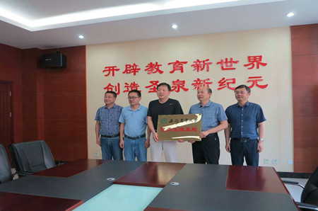 本网讯 6月12日下午,资源与环境学院党委书记李春保、招生就业处副处长王涛、资环学院党委副书记张晓伟等一行5人前往肥东圣泉中学举行优质生源基地挂牌仪式,进行了招生宣传,并与中学签署《安徽农业大学优质生源基地协议书》。圣泉中学校长王胜权以及分管校领导和毕业班班主任代表等参加签约授牌仪式。