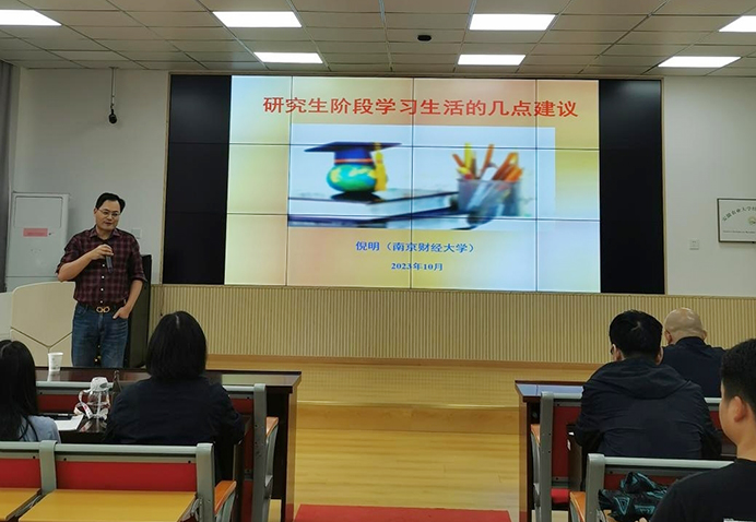 倪明首先回顾了在母校的求学时光,衷心感谢母校的培养,值此母校95周年校庆之际,向母校表示热烈的祝贺。随后,倪明为学院师生作了题为《研究生阶段生活的几点建议》的讲座,重点从研究生阶段“为什么学、学什么、怎么学”三个角度进行阐述,帮助同学们明确学习方向、掌握学习方法、夯实专业基础知识,并以生动的案例和自身经验经历分别从“专业能力、自学能力、研究与创新能力、协同组织与管理能力”等角度分享了研究生所应具备的基本素质。