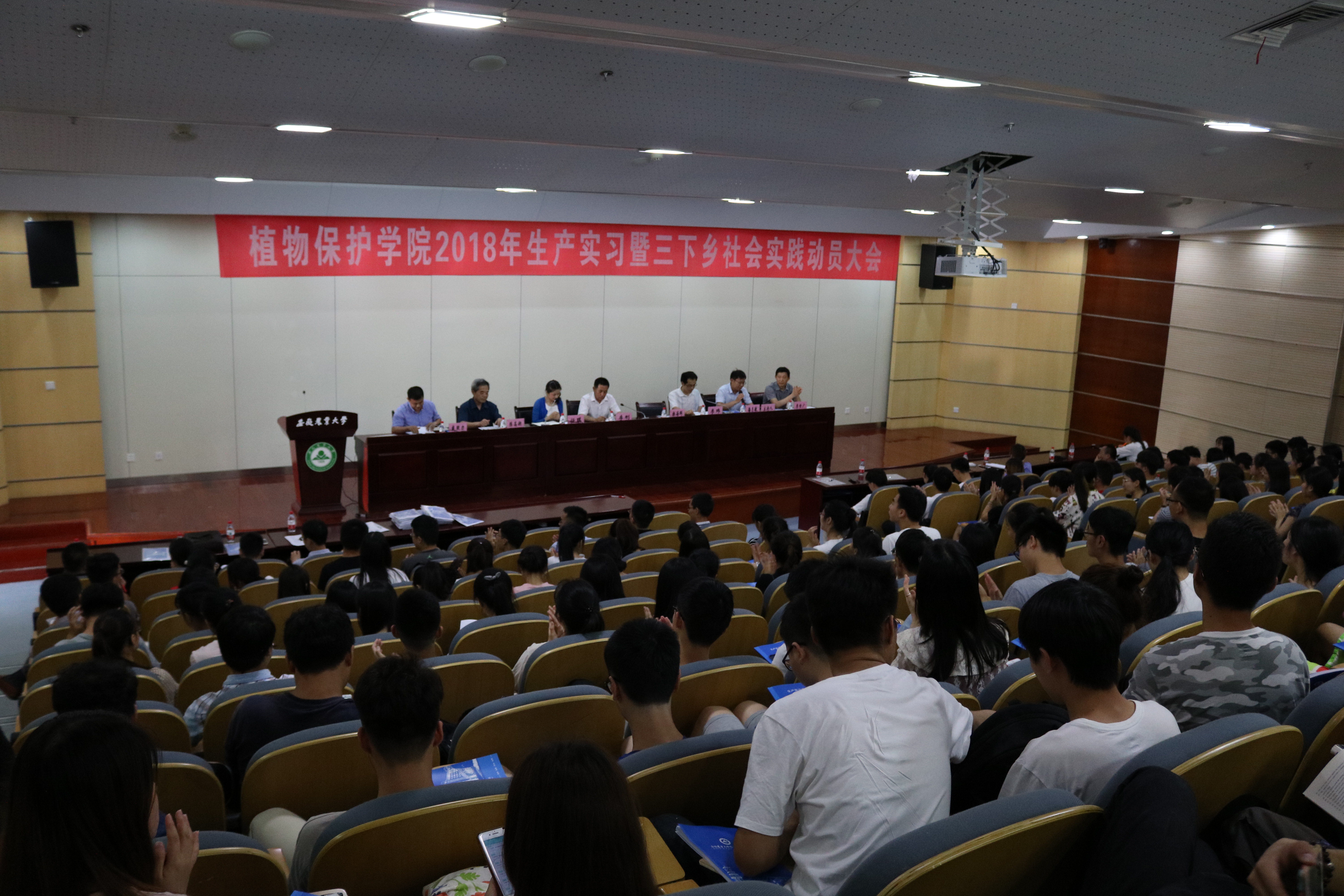 本网讯6月15日下午,植物保护学院在图书馆第二报告厅召开生产实习暨“三下乡”社会实践动员大会。安徽省植物保护总站副站长李刚、校团委副书记任琪、教务处副处长李玮、学院督导组成员应邀出席大会,学院党政领导及生产实习队全体教师、实习生参加了本次会议。会议由学院副院长潘月敏主持。