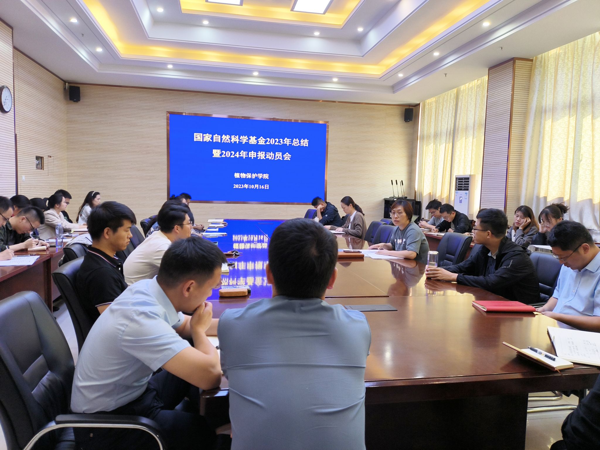 本网讯 10月16日下午,学院国家自然科学基金2023年总结暨2024年基金申报动员会在中西部大楼1211会议室顺利召开。学院党政领导、系主任,基金申报人参加会议,会议由副院长张华建主持。
