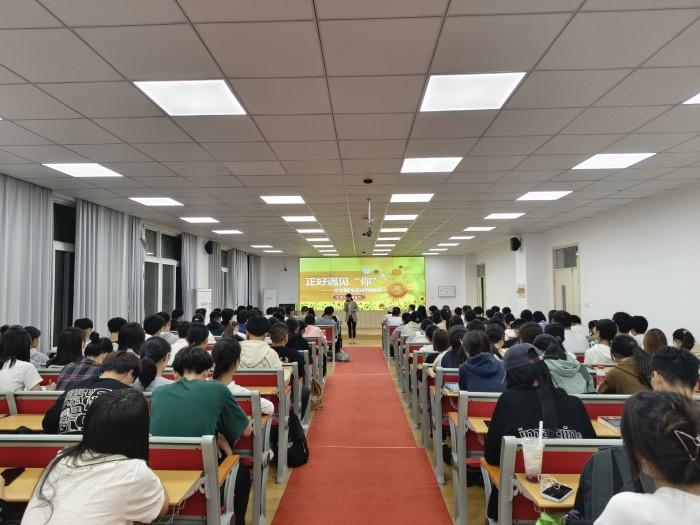 杨金丹老师以新生常见的适应困惑为切口,引导学生从遇见新的环境、遇见新的关系、遇见新的自己等三个方面认知自我,鼓励同学们在新的成长阶段积极调整心态,拥抱新未来。随后,她围绕宿舍人际关系、学业困扰、恋爱困扰和其他困扰等方面与大家分享了一些实用小技巧和心理调适方式。最后,介绍了学生寻求心理支持的渠道,倡导同学们关注自身心理健康的同时做个有心人,主动关心身边人的情绪状态,共同营造积极向上的校园氛围。