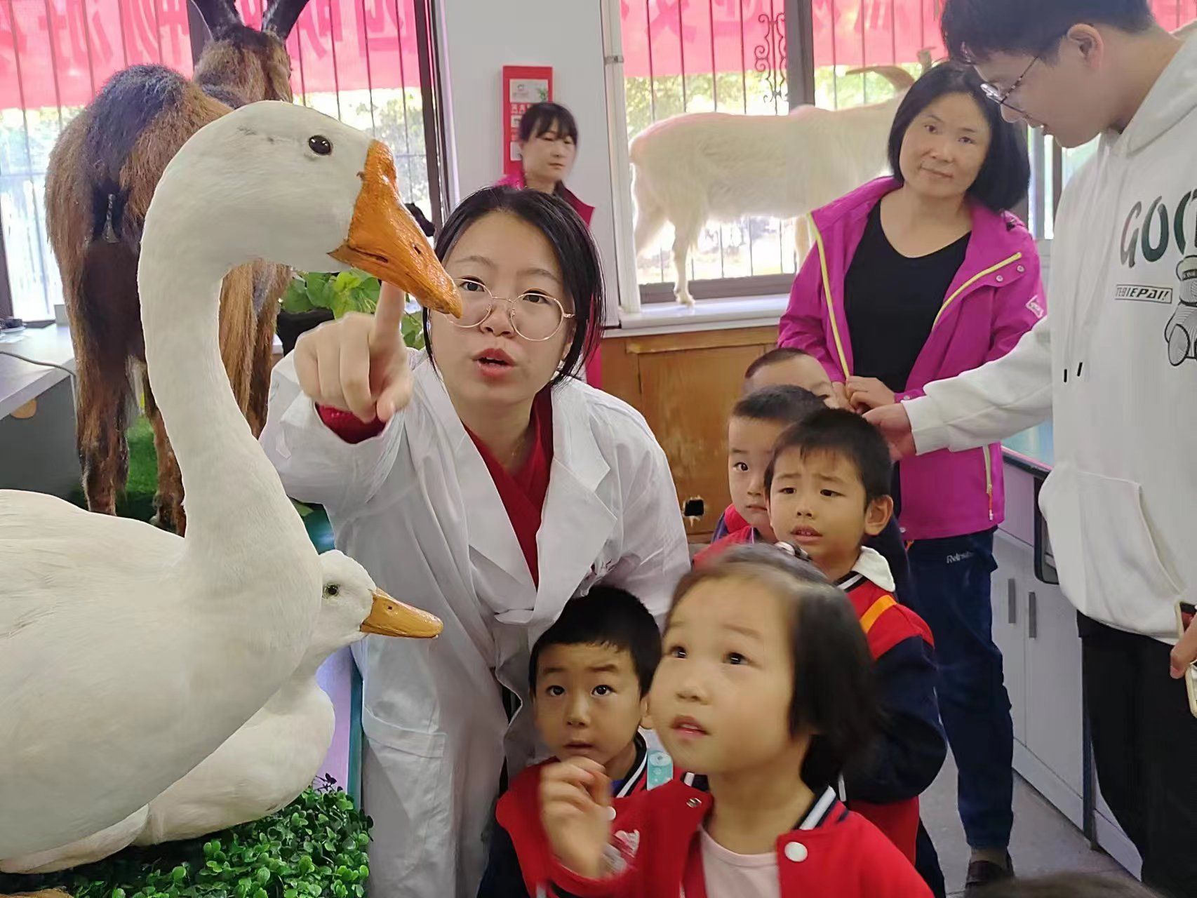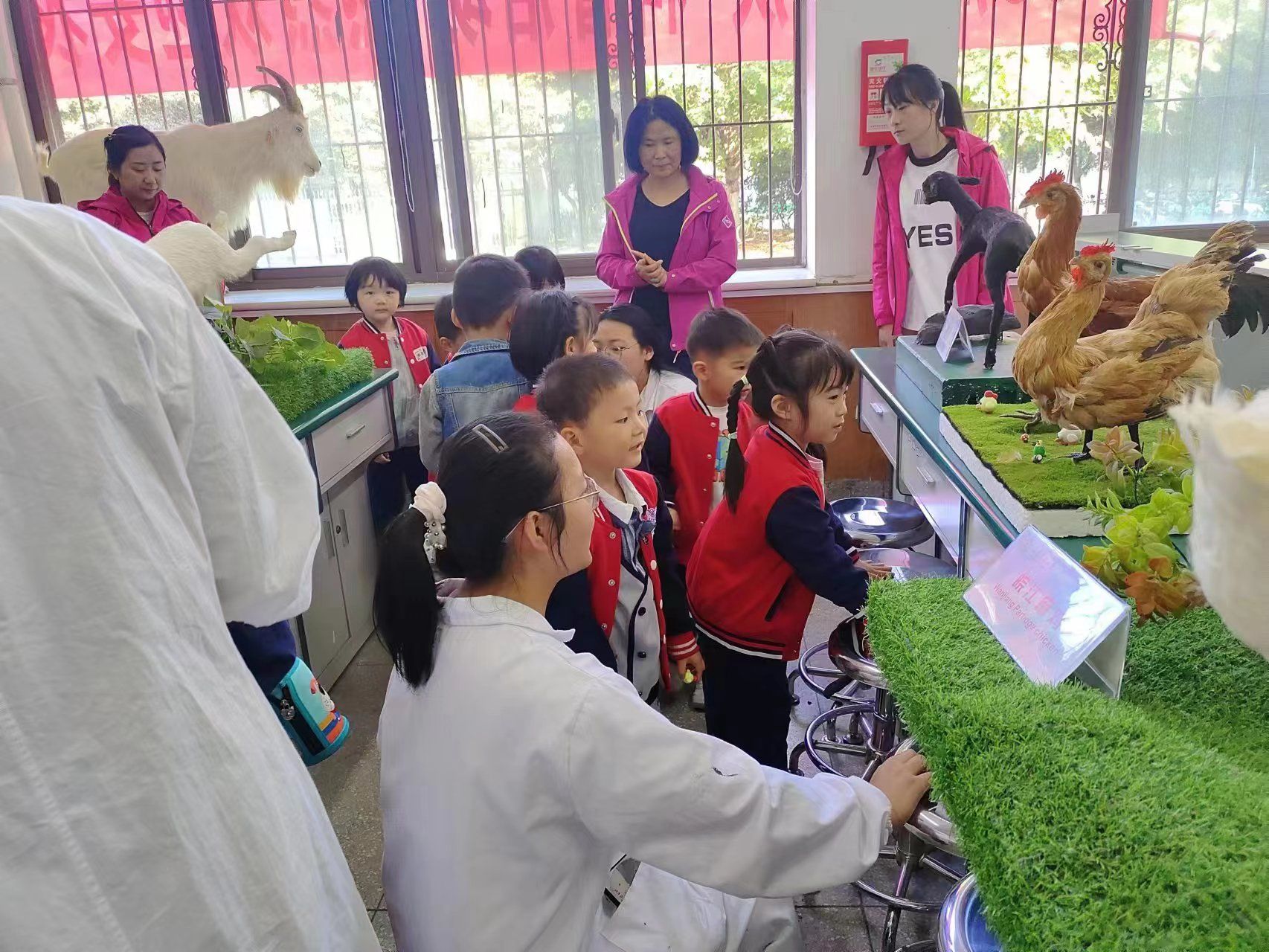 安徽农业大学幼儿园的小朋友们在老师的带领下体验了一节别开生面的动物科普课堂。学院精心布置了由师生制作的禽动物模型,并给小朋友生动有趣地讲解了一堂有关动物品种、畜牧生产、科学研究等方面的科普课程,激发孩子们对畜牧业和科学研究的好奇心。孩子们对这次科普活动表现出极大的兴趣并纷纷举手发言,分别讲述了自己在生活中与动物之间的有趣故事,与学院的师生展开互动。