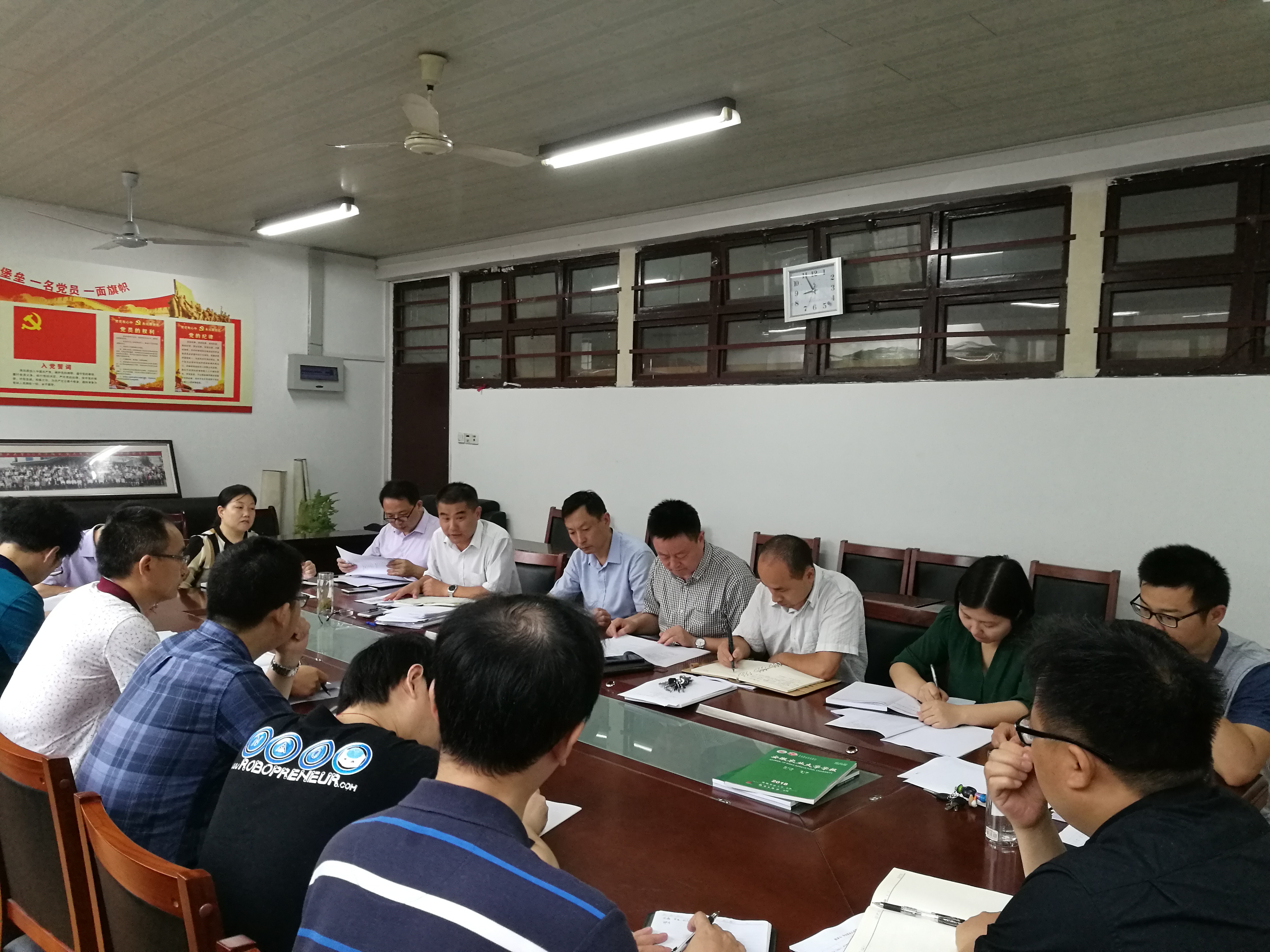 本网讯 6月22日上午,为了进一步推进机械设计制造及其自动化专业的工程教育认证工作,工学院在学院二楼门厅会议室又一次召开了专题讨论会。会议由副院长姚兴贵主持,院党委书记甘传鹤、院长曹成茂、副院长陈黎卿、副书记孙福,学科负责人和部分系主任、专业辅导员参加了会议。