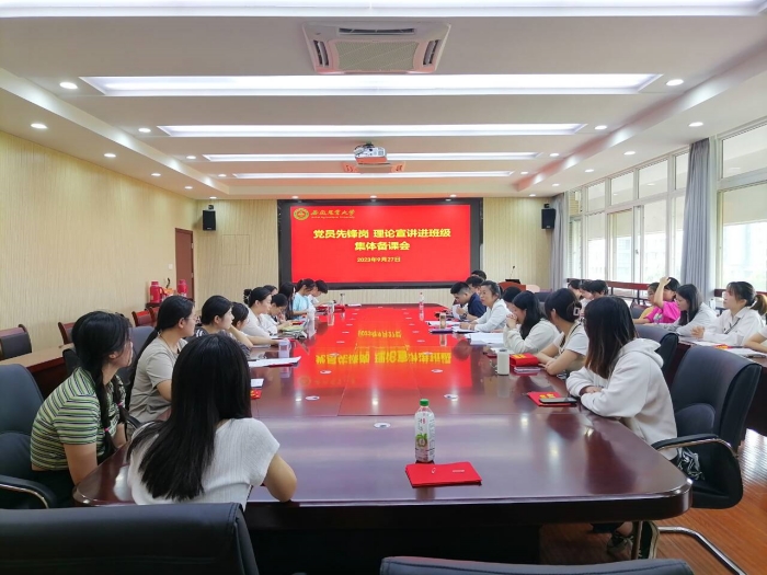 本网讯 为了贯彻落实校党委专项行动,在学生群体掀起教育思想大讨论热潮,外国语学院成立学生党员理论宣讲团,经集体备课,点对点备课,宣讲团自10月18日起进入学院各班级开展理论宣讲。