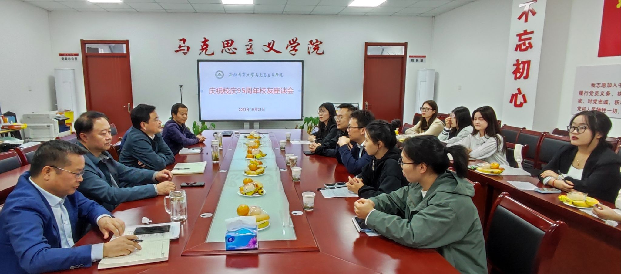 本网讯 10月21日下午,马克思主义学院在人文楼302室召开庆祝校庆95周年校友座谈会,会议由院党委副书记、纪委书记、副院长袁修雨主持。院党委书记孙超、院党委副书记、院长方国武、人文学院院长黄洪雷、院教授委员会主任徐俊、校友王为科、王亚洋、文榕、金倩、李涛、在校学生代表等参加了会议。