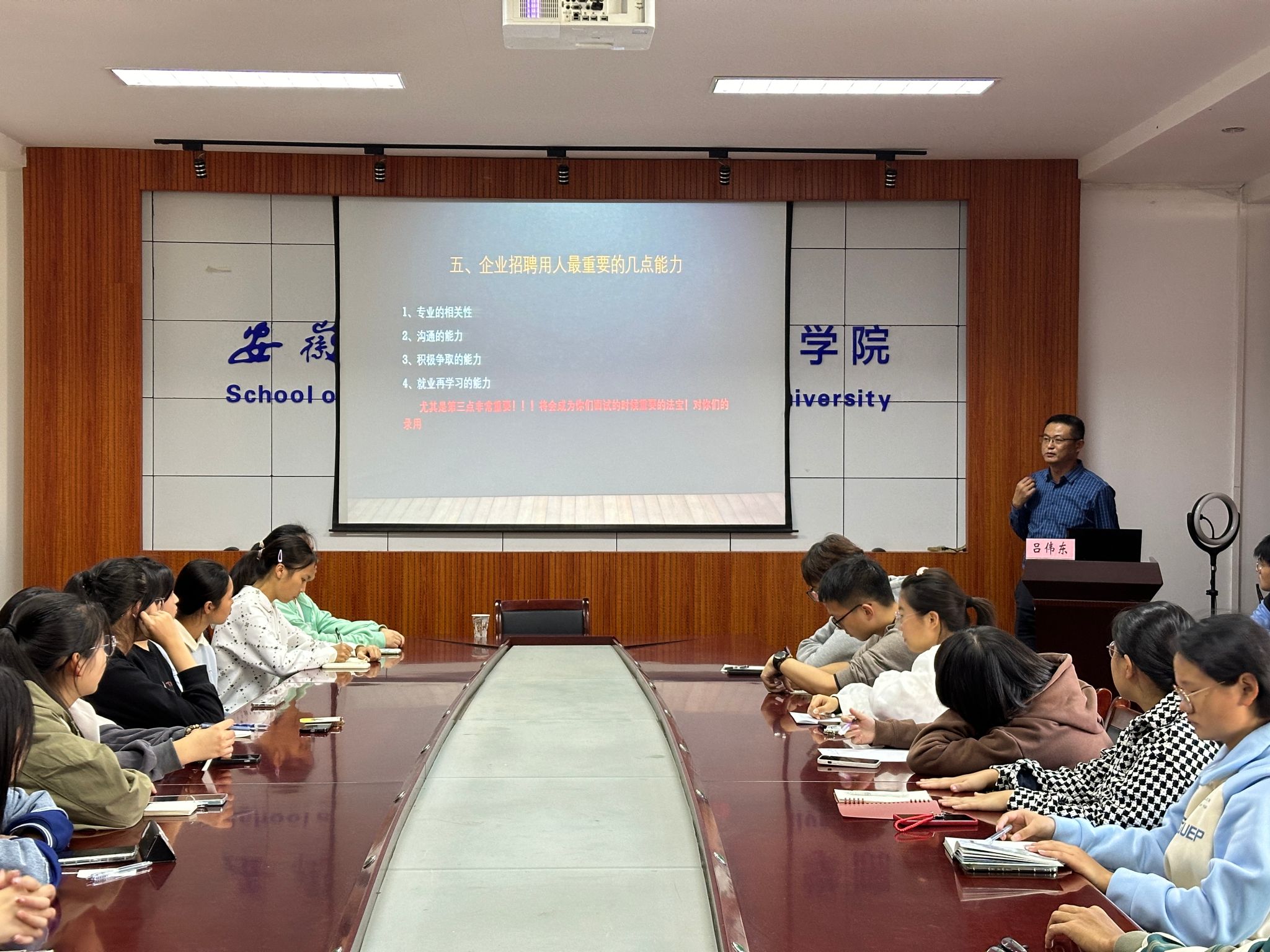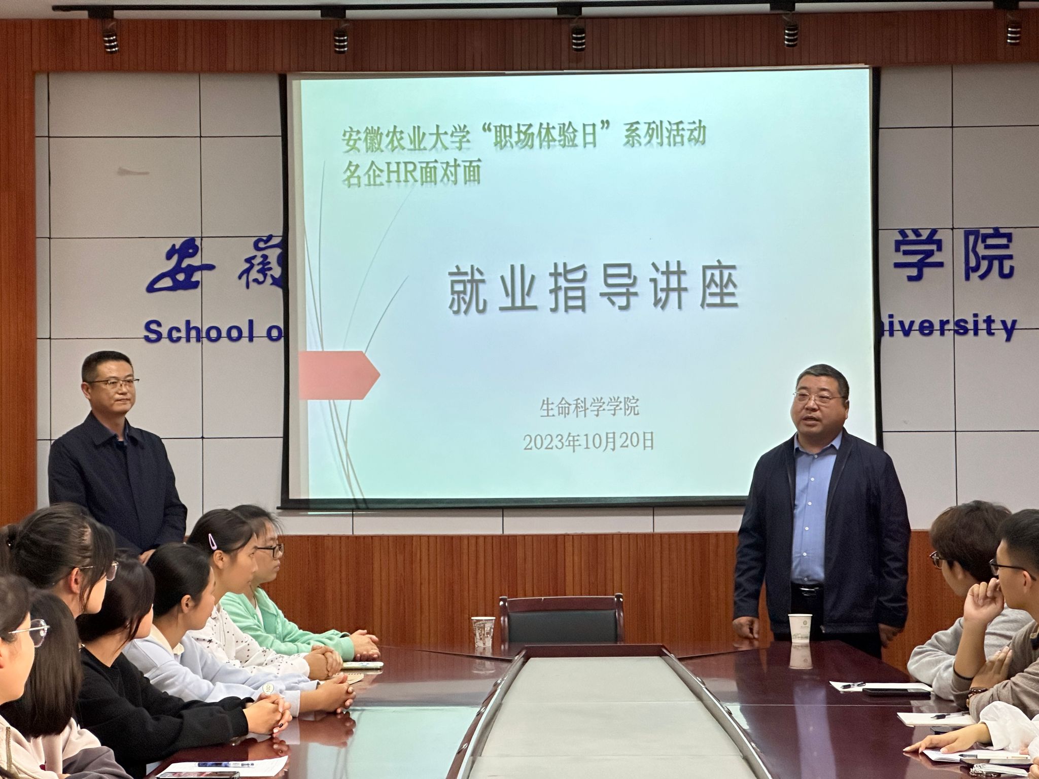 本网讯 10月20日下午,生命科学学院在学院418会议室举办了“我与名企HR面对面”活动,邀请学院2004届蚕学专业校友、安徽合旗米业总经理吕伟东与学生面对面,交流大学学习生活、职业规划。活动由学院党委副书记闫大玮主持。