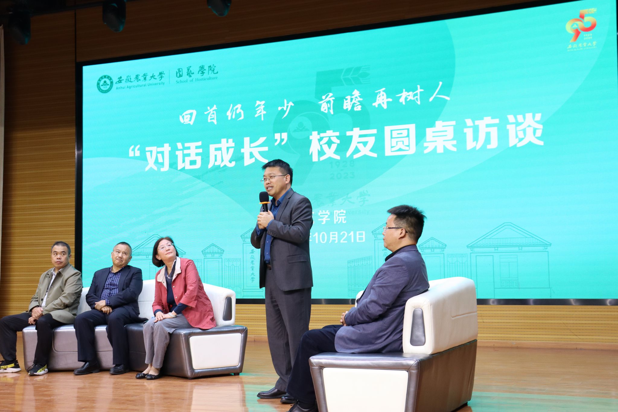 “压力肯定是有的,迈出第一步去,你就有可能”“学农需要热爱、需要坚定”“创业的前提是要打好基础”......面对同学们在就业前景和专业学习方面存在的疑惑,1998届园艺校友、安徽国豪农业科技有限公司董事长韩仁长、1996届果树专业校友、安徽大地园林工程有限公司董事长凌利宏两位校友给出了坚定的答案——潜心求学,厚积薄发。在校友老师的殷殷嘱托中,同学们也必将赓续奋斗精神,以前辈们为灯塔,接过历史接力棒,展现新一代青年学子的使命担当。