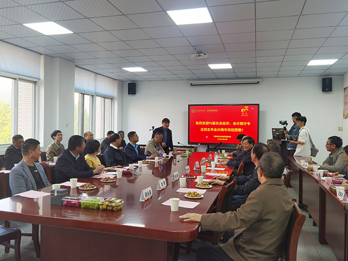 本网讯 正值母校九十五周年校庆之际,恰逢93届农业经济、会计统计专业毕业三十周年、03届土地资源管理专业毕业二十周年,经济管理学院于10月20日和21日举办校友返校座谈会。校党委常委、副校长韩军出席会议,学院党委副书记(主持工作)吴国卿,党委副书记、纪委书记周涛,副院长田涛,学院教师等师生代表与返校校友相聚一堂,重温师生情、再叙同学谊。