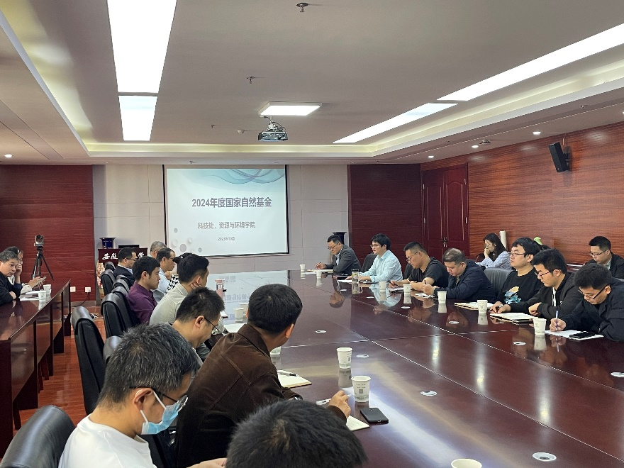 本网讯 10月26日上午,资环学院2024年基金申报动员会在中西部大楼510会议室顺利召开。校科技处副处长叶辉、50余位中青年教师参加会议,会议由学院副院长叶新新教授主持。
