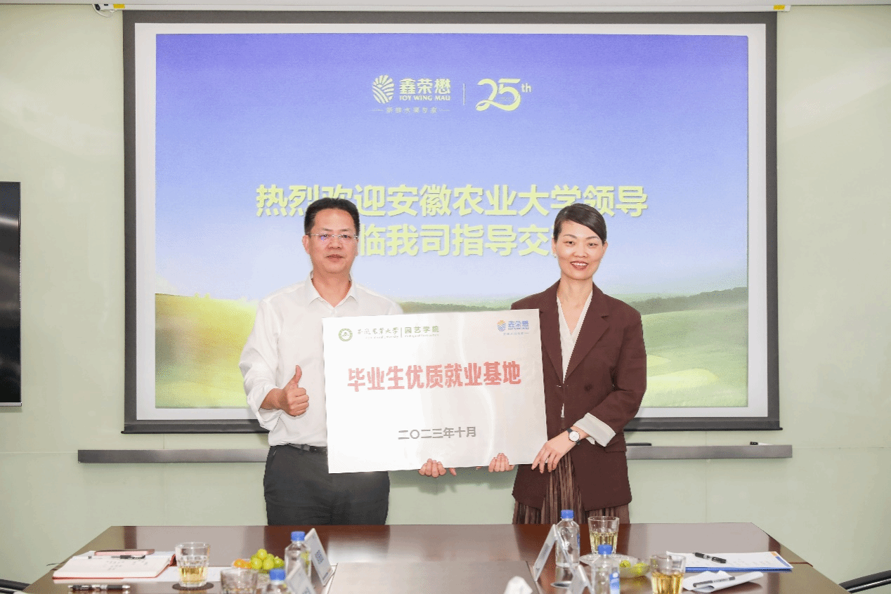 刘秀良对园艺学院一行表示热烈欢迎,介绍了企业发展情况、人才培养发展渠道、我校学生在司发展情况,并对学校人才培养质量和毕业生职业能力给予高度评价。他指出,安农学子踏实、勤奋、进取、团结的品质赢得了公司的认可,28名学生在企业稳定就业,部分学生已经成长为公司的核心骨干成员。他希望,双方能在学生实习就业、订单式培养、设立奖助学金等方面进一步创新合作模式、扩大合作成果。会上,还举行了“毕业生优质就业基地”授牌仪式。公司职工2013届校友李朋晴和2019届校友胡园园分别交流发言。