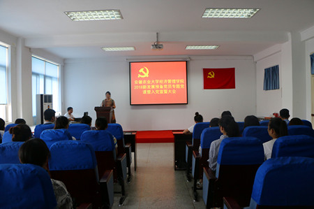 本网讯 在中国共产党成立97周年来临之际,为了帮助新发展预备党员尽快明确身份,坚定共产主义理想信念,牢固树立党员意识,6月29日,经济管理学院在经管楼321召开新发展预备党员专题党课暨入党宣誓大会。学院党委书记王伟、副书记倪健、学生党支部书记以及新发展的60名党员参加大会。